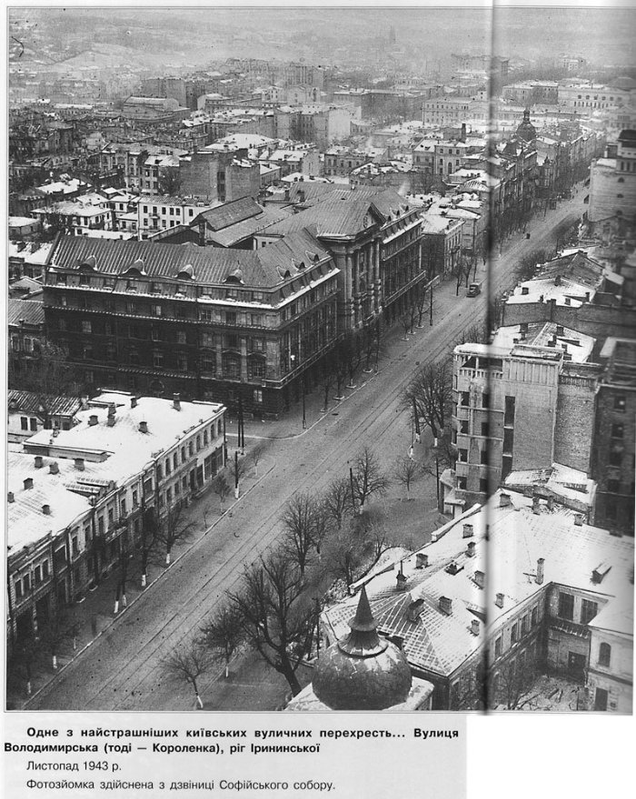 Угол Красноармейской (ныне - Большая Васильковская) и Жилянской, осень 1941 года.