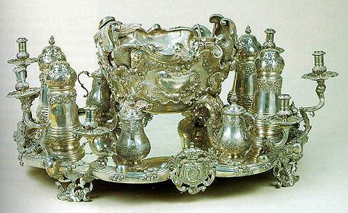 Первый серебряный сервиз в России был изготовлен в 1711 году по именному указу Петра I. Например, 3275 предметов входило в выполненный в едином стиле сервиз, принадлежавший некогда графу Орлову. Общий вес серебряных предметов, входящих в сервиз, составлял около двух тонн.